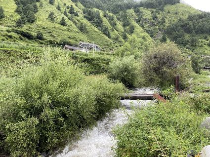 六匹馬,馱著我們,還有我們的行李丁丁當(dāng)當(dāng)走向立乃村后的大山腳下,走進(jìn)蜿蜒崎嶇的峽谷,周遭大山嵯峨。谷中一道河水清冽淌出,水底的黑白石子在透明的水波下顫動著。河兩岸長滿了成片濃密的鳶尾,因?yàn)楹?,花朵稀疏。幾棵又幾棵開滿白色碎花的竇潔子樹臨水生長,初秋時節(jié),樹上就會結(jié)滿色澤美麗的紫色小漿果,引來林間的鳥雀啄食,牧人遇見了也去歡喜地摘來吃。馬匹不時去渡過一座搭建在河水上的簡易木橋,接著就會迎來一段向上的坡路。越往峽谷深處,鳶尾花就越發(fā)稀少了,我們開始朝著山道攀行。 南杰騎在最前面的一匹馬上引路,雍貝騎在她身后的那匹馬上,她偶爾回頭看看雍貝和雍貝之后的我一眼,目光又回落到雍貝臉上,內(nèi)心升起喜歡,面目就顯出安適和坦然。吉美騎在最后一匹馬上看守我身后那兩匹馱著行李的馬,怕它們丟失了東西。馬背上的雍貝,沒有顯出新奇或是驚慌,就只那樣的穩(wěn)重騎行,仿佛生來就是一位騎手。