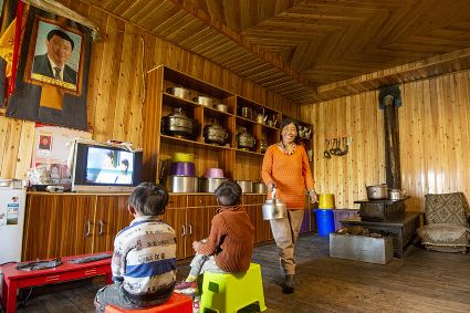 觀看圖片展的贈(zèng)科小學(xué)退休老校長(zhǎng)阿伙布老人一邊指著贈(zèng)科鄉(xiāng)安卡村的全貌圖,一邊自豪地給身邊觀展的人群說(shuō):“這是我的家鄉(xiāng),在六七十年代的時(shí)候,村里房子是沒有樓層的土木房?,F(xiàn)在,村里的人居環(huán)境有了很大改善,房子也修得很漂亮??吹郊亦l(xiāng)的變化,我非常高興?!?/p>