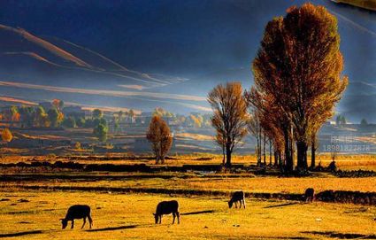 尤其亞丁匯集了稻城秋天所有濃烈的顏色:純凈的藍天,飛過白云間的蒼鷹,風格獨特的藏鄉(xiāng)建筑,金黃的秋楊,深紅的沼澤,波光粼粼的小河,多么美的一幅油畫,是人們歸隱田園的夢想天堂。