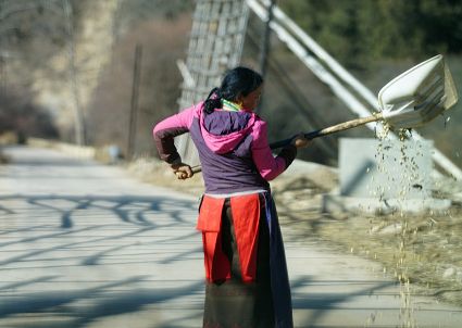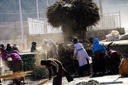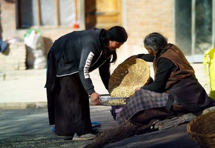 陽光溢彩的早晨,我已經從對面山上的柏木林里回來了。中午時分,村里的人們又開始打碾豆子了,那場面十分誘人。感覺上我已經離開村子很遠了,而在車巴河岸邊,我又一下回到了村子。勞動的人,那個不冰清玉潔呀!