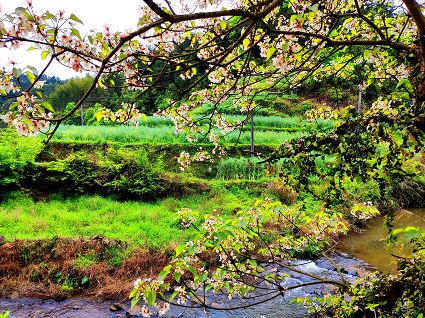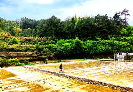 “布谷,布谷”,布谷鳥一聲呼喚,田野沸騰起來了。有人在一丘丘不規(guī)則的水田,撒播稻種;有人在屋后的坡地搭好竹架,栽上一線線瓜秧。