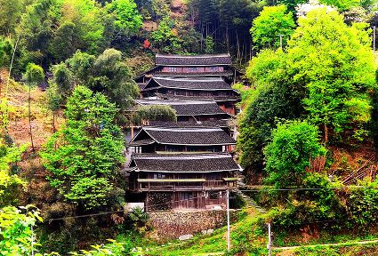 一眼的山,一眼的綠,一眼的云霧,一眼的煙雨,從吊腳樓木格花窗亮麗妖嬈走出來。經過吊腳樓的旅人,不經意就會站成一棵長腳的樹。
