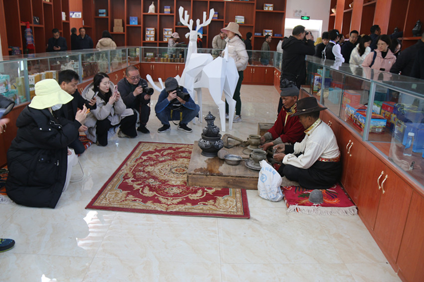 阿西土陶是稻城縣獨特的手工藝產品,國家級非遺項目,被譽為稻城亞丁“四絕”之一。在赤土鄉(xiāng)子定村,采風團了解阿西土陶非遺文化保護與利用情況。采訪年過六旬的省級非遺傳承人格里,現場觀看制坯、貼瓷。據介紹,這項非遺技藝已經走進校園,小朋友們用阿西土陶制作成海螺、杯子、茶壺等器具,非遺已經融入了稻城人的生活。