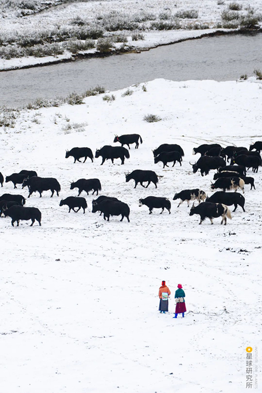 高原上定居不易而自然還有更多的考驗,高寒貧瘠的土地,山脈阻隔的交通,峽谷中蓄勢的山洪,斷裂帶上頻繁的震顫,隨時都可能給人們的生活籠罩上一層陰影。所幸從古至今,不斷地適應(yīng)、不斷地創(chuàng)造,成為了這片人間的底色。為了抵御高原的寒冷,人們用山羊等動物皮毛織起布匹,縫制寬袍長袖的袍子,發(fā)展出特色鮮明的藏裝;為了對抗物產(chǎn)的貧瘠,人們飼養(yǎng)牦牛,從牦牛奶、牦牛肉中獲取營養(yǎng),用牦牛毛織成的布料做帳篷,點燃牦牛糞生火。