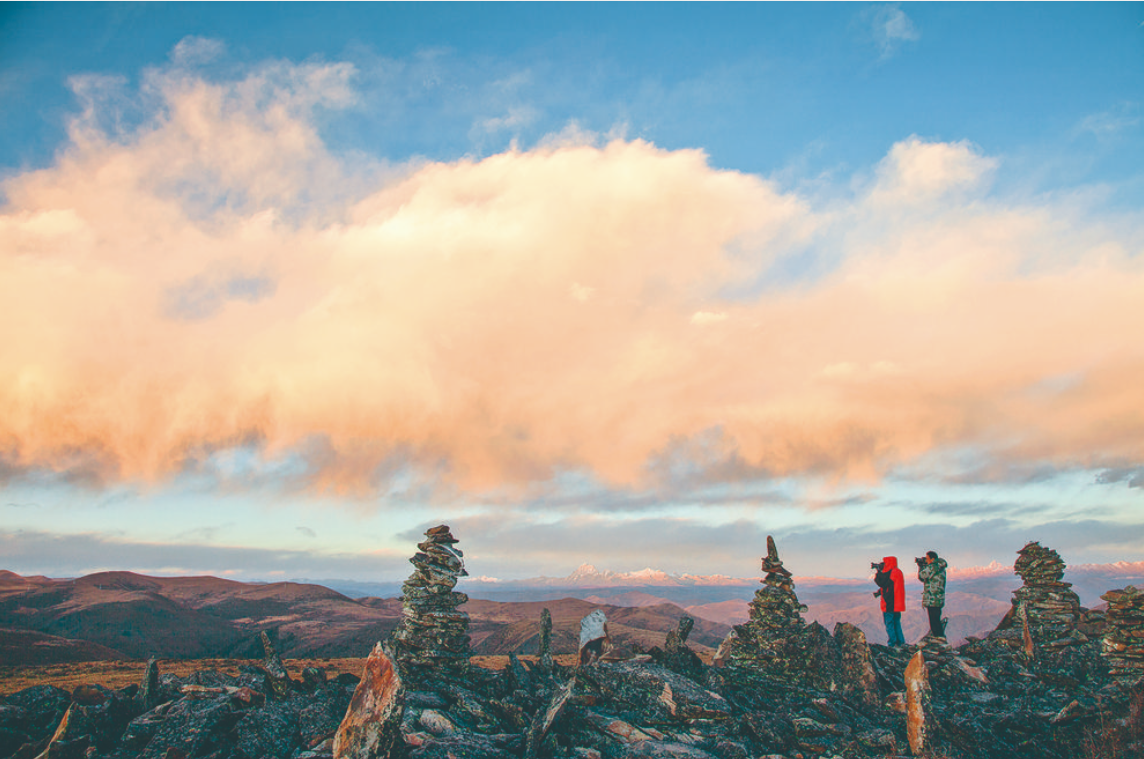 在這條路上行走,雖會遇到種種因天氣或地質(zhì)路況造成的危險,但卻阻擋不住人們前行的腳步。作為從事攝影多年的風光攝影師,我也曾長期奔波在川藏線上。每當光影勝景乍現(xiàn),我心中都會激情涌動,充滿了對這一方土地和人們深深的愛。而能夠把這些美景攝入鏡頭,并與朋友們分享,于我而言就更感榮幸。川藏線是一條鮮花盛開之路。在康定市境內(nèi)聳立的海拔7556米的大雪山是蜀山之王,橫斷山脈最高峰——貢嘎山。它如同一朵無比巨大的雪蓮花,綻放在天地之間。在它的東坡海螺溝至康定城路途中,有一個名叫雅家埂的山口。每當春夏交替,山口會盛開漫山遍野的各色杜鵑花,在藍天白云的映照之下,一眼望去,簡直就是斑斕無比花的海洋。貢嘎山區(qū)域也是聞名世界的植物模式標本采集地,百年前,世界著名的植物學家威爾遜所采集命名的許多植物均出自這里,其專著《中國——園林之母》1929年出版,轟動世界。