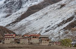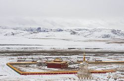 冬季的色達(dá),常常被皚皚白雪覆蓋,民居、帳篷、寺院、經(jīng)幡、牦牛點綴期間,美麗迷人。