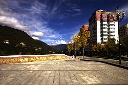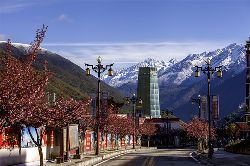 康定新城位于康定舊城南,地處折多河、榆林河交匯處,緊鄰國道318線,距舊城中心約8公里,康定至海螺溝旅游黃金線榆磨公路穿城而過??刀ㄐ鲁呛诵膮^(qū)規(guī)劃總占地面積2.5平方公里,容納城市人口2.5萬人。