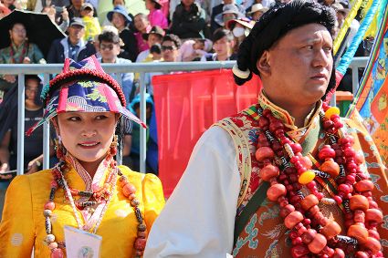 于是,年復(fù)一年,“漢子”與“花”兒們便挺拔、綻放在漢語表達(dá)的一個(gè)極點(diǎn)之上,被玄想,被渴望。對遠(yuǎn)道而來的人們或是世代居于高原的子民而言,康巴漢子與康巴之花不僅僅是美的化身,通過康巴漢子與康巴之花的評比,人們在尋找一個(gè)早已失落卻又天然渾成的世界。