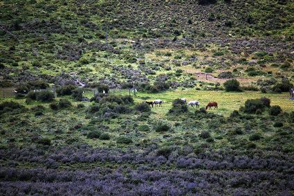 陽(yáng)光下跑馬場(chǎng)的牧馬。(朱虹 攝)