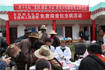 截至目前,全州累計B超人群篩查51.17萬人,免費藥物治療1.24萬人,手術治療803人。全州登記家犬114509只,80%以上的寺廟落實了依法規(guī)范養(yǎng)犬規(guī)定。全州已建成12個集中屠宰場(點),實施犬驅蟲10.5萬只,羊免疫236.23萬只次。全州累計開工打井382口,集中供水18處,改造提升工程16處,6.7萬農牧民群眾受益。健康教育實現(xiàn)廣覆蓋、健康行為逐步養(yǎng)成,開展千人小分隊送健康進村、包蟲病防治知識競賽、送電影下鄉(xiāng)宣傳、發(fā)放健康教育干預包等形式多樣、內容豐富的健康教育。 (周衛(wèi) 攝影報道)