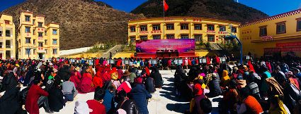 11月18日,筆者跟隨州委群眾宣講團來到鄉(xiāng)城縣熱打鄉(xiāng)日然寺,宣講現(xiàn)場宏大的場面和龐大的觀眾人數(shù)給了我們不小的驚喜,場地雖然是安排在了日然寺,但附近的村民都趕來聆聽宣講,368人齊聚一堂,讓日然寺的壩子顯得有些擁擠。