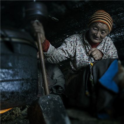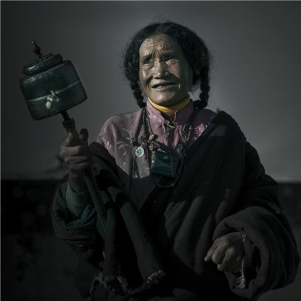 每當(dāng)我手持相機(jī)時(shí),對(duì)他們始終懷有一種敬畏,我捕捉到他們眼神里流露出虔誠(chéng)??粗?jīng)筒上“甲多”的飛轉(zhuǎn),我陶醉了,醉在那轉(zhuǎn)經(jīng)筒的旋轉(zhuǎn)舞動(dòng),醉在那轉(zhuǎn)經(jīng)筒傳誦的故事,醉在那一張張手持轉(zhuǎn)經(jīng)筒的面孔,還有,還有因祈禱音符助推而從未停止的轉(zhuǎn)經(jīng)筒……