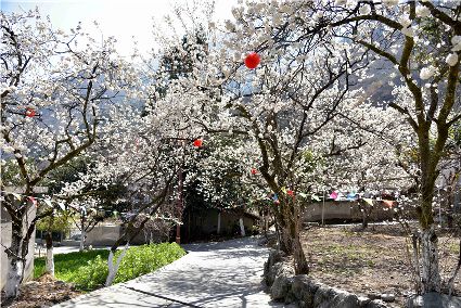 陽春三月,瀘定陽光明媚,到處生機盎然。大渡河畔的杵坭、田壩等地櫻桃花在田間競相綻放,一團團,一簇簇,一朵朵潔白的花兒緊緊簇?fù)碇?,綴滿枝頭。一陣陣微風(fēng)吹來,櫻桃花隨著枝條在風(fēng)中輕盈地?fù)u曳。