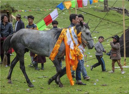 夏天是草原最美的季節(jié),道孚縣玉科草原在這個(gè)季節(jié)里正舉辦久負(fù)盛名的賽馬活動(dòng)。五顏六色的彩帶飄舞在牛毛大帳篷周圍,喜慶氣氛四處洋溢。來自遠(yuǎn)近牧區(qū)的親屬也專程趕來玉科草原訪親會(huì)友,參與賽馬角逐,濃郁的民族盛會(huì)令人耳目一新。