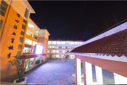 走進暮色中,華燈初上,夜幕下的寄宿制學(xué)校更加美麗。具有幾何構(gòu)成美感的教學(xué)樓鐫刻著寒來暑往生琴書,嘔心瀝血育桃李。