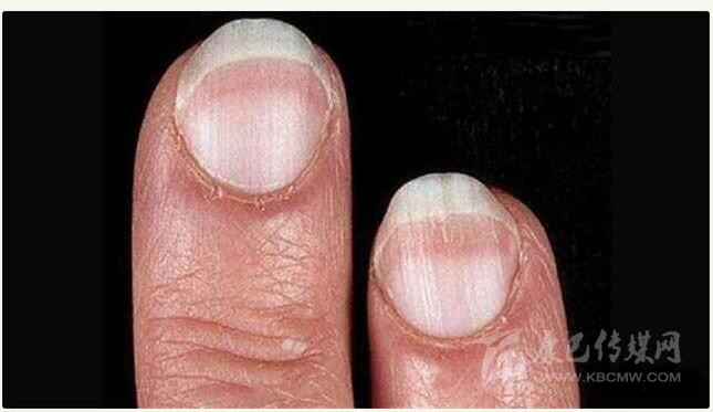 辨顏色。健康人的指甲一般是粉紅,有一定光澤且均勻。不少人把較白的指甲看做貧血征兆,但要對癥分析。如指甲發(fā)紫是動(dòng)脈硬化、血脂高,或心臟滯阻的前兆;指甲發(fā)青,則為重寒癥,血瘀;指甲發(fā)黃可能肝膽有問題,或血糖代謝不暢;還有一種指甲發(fā)藍(lán),顯示肺部受阻。
