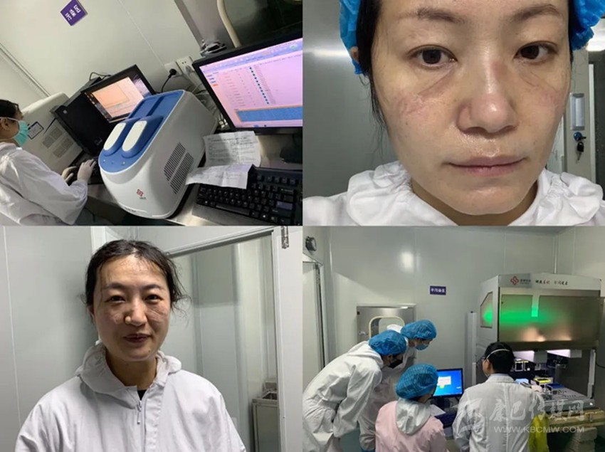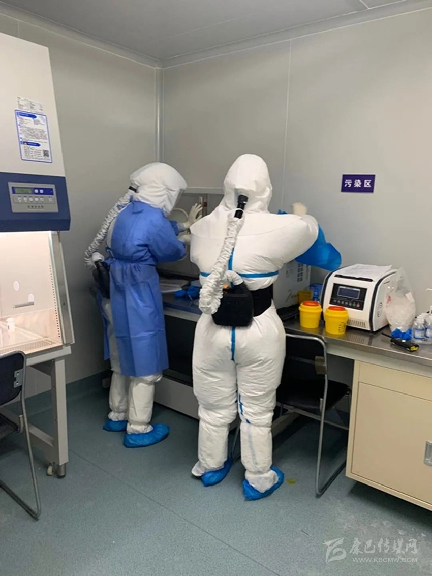 進入實驗室后,工作時間至少是6—8個小時,連續(xù)工作,不進食、不飲水,盡量減少上廁所的次數(shù)?!斑M去(實驗室)一趟很不容易,防護用品緊缺,我們想盡快完成這些工作,就只能不吃不喝,先把手上的樣本盡快檢測完,心里面才踏實。”縣疾控中心的張光慧說。