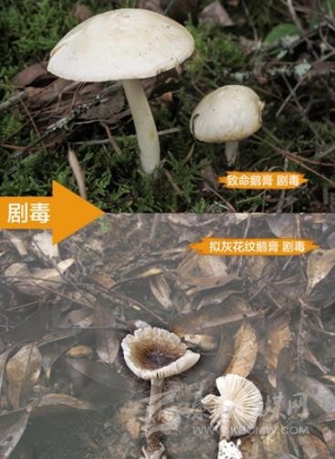 含劇毒的致命鵝膏和擬灰花紋鵝膏。圖片來源:中國疾病預防控制中心