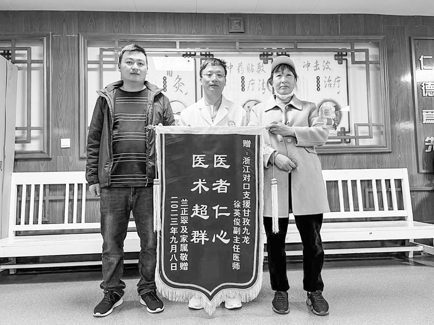 本網(wǎng)訊 “一面錦旗不足以代表我們?nèi)业母兄x,感謝您把我的頑疾解決了,現(xiàn)在生活恢復(fù)了正常!”近日,家住九龍縣魁多鎮(zhèn)的蘭大姐專程來(lái)到九龍縣人民醫(yī)院,將一面“醫(yī)者仁心 醫(yī)術(shù)超群”的錦旗送到杭州對(duì)口支援醫(yī)師徐英俊的手中。
