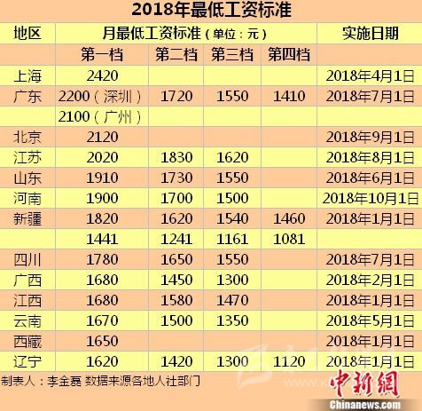 今年以來提高最低工資標(biāo)準(zhǔn)的地區(qū)至少有上海、廣東、北京、江蘇、山東、河南、新疆、四川、江西、廣西、云南、西藏、遼寧等13個(gè)省份。