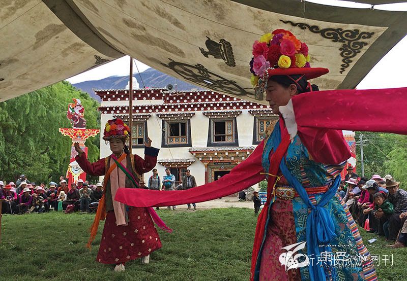 演出時他們會把藏戲創(chuàng)始人唐東吉布的雕塑供奉在現(xiàn)場。