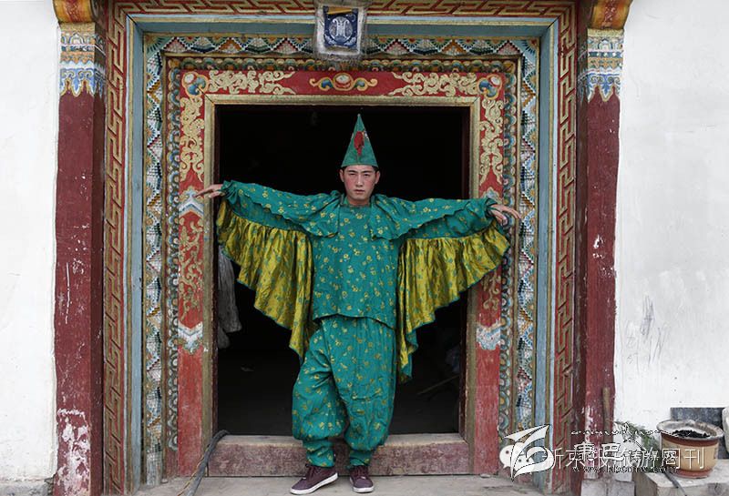 扮演藏戲里的神鳥演員。