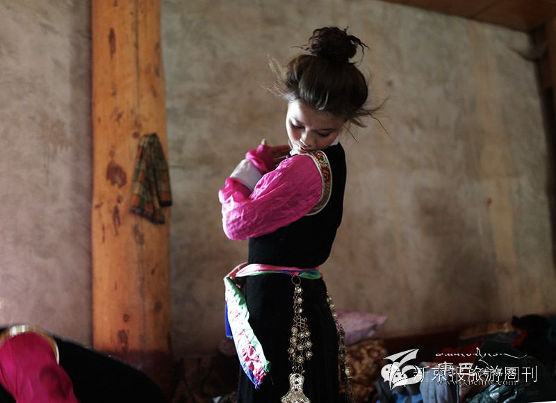 巴塘弦子藝術團的演員在換裝。