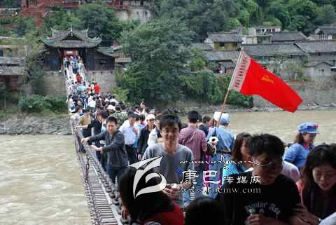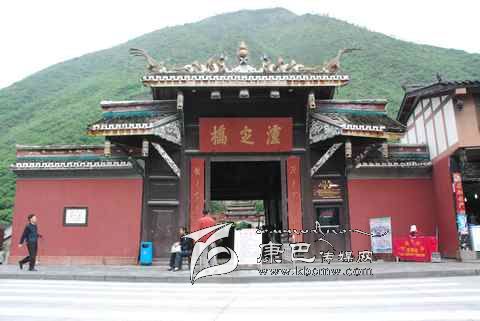 瀘定橋始建于清康熙44年 (1705年),次年五月竣工,康熙御筆題名“瀘定橋”。橋身共由13根鐵鏈組成,其中底鏈九根,扶手四根。橋東西兩端各有橋臺(tái)一座,西端觀音閣下有康熙題寫之《瀘定橋》石碑,橋東有《御制瀘定橋碑記》,瀘定橋是大渡河上第一座穩(wěn)固的大鐵索橋。1935年中國(guó)工農(nóng)紅軍晝夜行軍240里,英勇飛奪瀘定橋,打開了北上抗日的通道,“十三根鐵鏈托起了一個(gè)共和國(guó)”,毛澤東同志為此寫下了“大渡橋橫鐵索寒”的壯麗詩(shī)句,瀘定橋自此名揚(yáng)四海,成為中國(guó)紅色第一橋。為紀(jì)念紅軍飛奪瀘定橋這一壯舉和奇跡,于1985年在沙壩建立了“紅軍飛奪瀘定橋紀(jì)念館”和紀(jì)念碑。紅軍飛奪瀘定橋紀(jì)念碑由鄧小平同志題寫碑名,聶榮臻元帥題寫碑文。紅軍飛奪瀘定橋紀(jì)念館收集了紅軍飛奪瀘定橋時(shí)用過(guò)的門板、槍、炮、紅軍的旗幟、文件箱、信件證明、標(biāo)語(yǔ)、戰(zhàn)報(bào)、手雷、馬刀等珍貴文物110余件以及177幅歷史照片。瀘定橋是全國(guó)首批重點(diǎn)文物保護(hù)單位,是國(guó)家重點(diǎn)培育的 “紅色旅游區(qū)”、重點(diǎn)組織規(guī)劃的 “紅色旅游精品線路”和重點(diǎn)建設(shè)的 “紅色旅游經(jīng)典景區(qū)”。