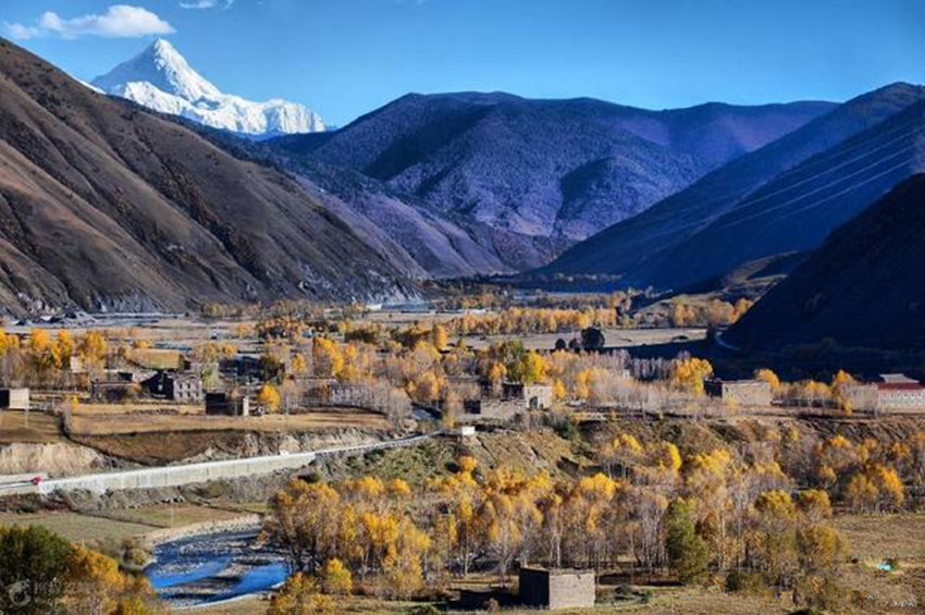 新都橋又稱東俄羅,位于318國(guó)道川藏南北線的分叉路口,號(hào)稱“攝影家的天堂“。在這可以拍攝到無(wú)垠的草甸,曲折的溪流,金黃的秋葉,山坡上大片在覓食的牛羊,散落著的藏族村寨。隨便一按快門都能得出一張絕美的風(fēng)景照。