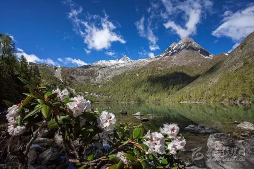 這里山清水秀,杜鵑花盛開,遠處雪山巍峨,近處碧波蕩漾。