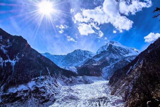在這里你依舊可以看雪山冰川,感受冬日暖陽,然而冬天的時候,沒有什么比望著雪山泡溫泉更治愈了。