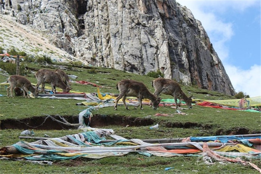 森林中成群結隊的盤羊是扎嘎神山的一道風景,這里的盤羊遇人不驚,特別是與寺廟的僧人和睦共處,如果你前往扎嘎神山游玩還可看見盤羊在僧人手掌上舔食的動人情景。