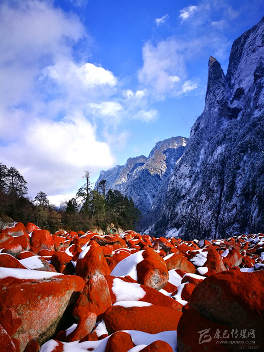 位于貢嘎山腳下綿延20多公里的紅石灘,更是與雪凇形成了強烈的視覺對比。燕子溝紅石歷經(jīng)冰川融水的沖擊,從遠處望去,愈顯鮮艷和壯麗。據(jù)燕子溝風(fēng)景區(qū)工作人員介紹,紅石只能在特定的環(huán)境中生存,它對生存環(huán)境如海拔高度、溫度、濕度、空氣純凈度及日照條件等要求極為苛刻。燕子溝景區(qū)紅石灘自海拔2100米以上,一直到貢嘎山主峰腳下,綿延近20公里,好似一張紅地毯從天而降!就規(guī)模、密度以及顏色鮮艷度來說,幾乎無人能及,曾有專家稱燕子溝景區(qū)紅石灘為世界紅石公園。