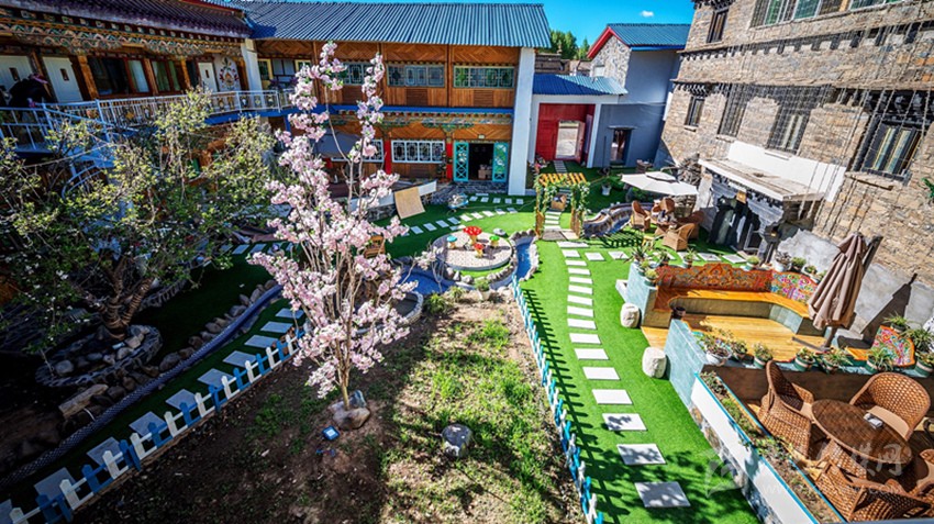 曾經(jīng)的倉(cāng)庫(kù)變成了咖啡廳,關(guān)牛的地方變成了餐廳,土司房變成了溫泉套間,四合院變成了小橋流水,雖然有些改變,但留給客人的依舊是一個(gè)傳統(tǒng)藏式四合院?!拔ㄒ桓淖兊闹皇嵌嗔诵┬氯诵率聛?lái)來(lái)往往,在這里從你的全世界路過(guò)……”石雅琴借用張嘉佳的《從你的全世界路過(guò)》的話(huà)語(yǔ),道出了她對(duì)“親愛(ài)的宅宅”的“定性”。
