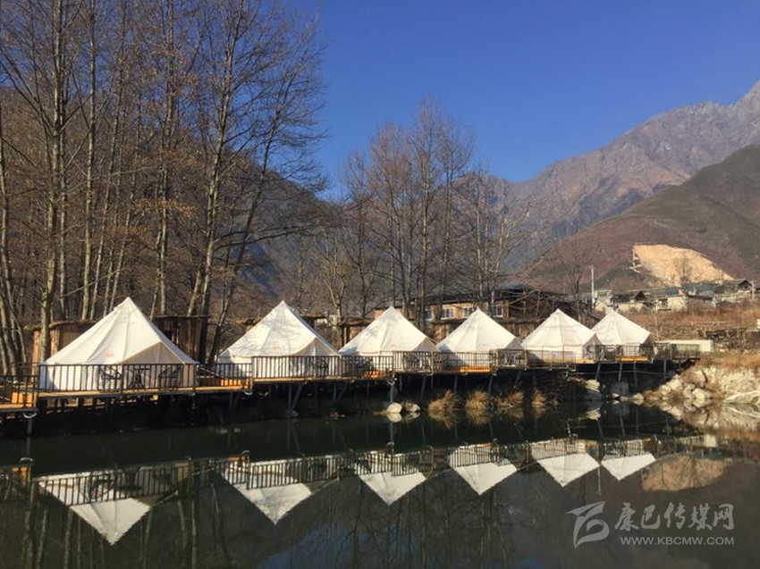 1月3日下午,落日的余暉映襯在對面的雪山頂,映射出一道道五彩的光芒。云谷音樂度假營地一排排整齊的白帳篷在陽光下,也格外耀眼。如今,占地70余畝的云谷音樂基地酒店、帳篷住宿、陽光餐廳等都已打造完畢,音樂廣場、錄音棚等也正在加緊完善中?!跋乱徊剑覀冞€將建設(shè)石屋、樹屋等特色民宿,讓游客來能有不一樣的非凡體驗?!币魳坊剡\營總監(jiān)付延輝介紹說。