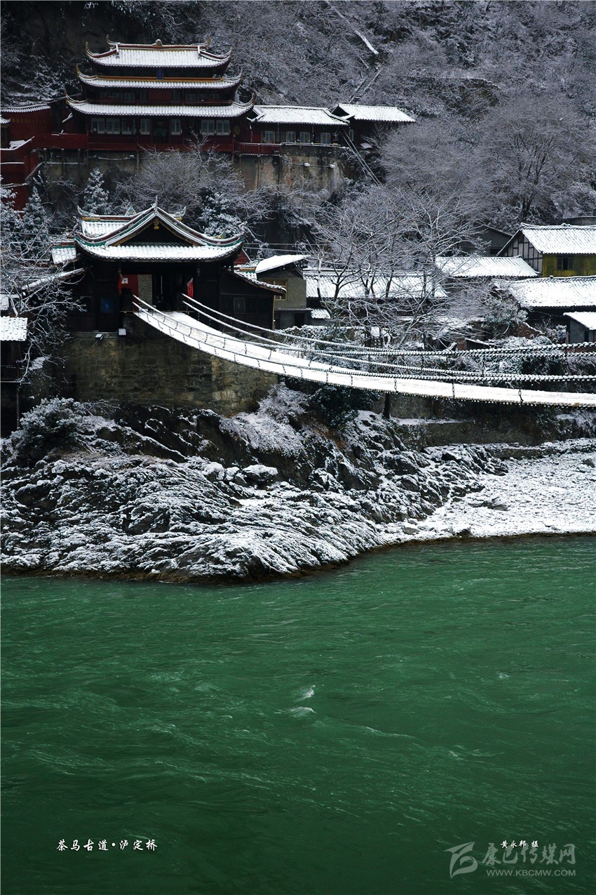 瀘定橋又稱為鐵索橋,是中國古代橋梁建筑的杰作,建成于康熙45年(1706年)??滴跤P題寫“瀘定橋”,并立御碑于橋頭,橋長103.67米,寬3米,十三根鐵索鏈固定在兩岸橋臺落井里,猶如十三條巨蟒橫空出世,經(jīng)歷歲月風(fēng)雨,穿越歷史煙云,無聲地訴說著往事。站在瀘定橋上,洶涌的大渡河水從腳下奔騰而過,橋體不規(guī)則晃動(dòng),蕩秋千似的,“大渡橋橫鐵索寒”的“寒”字,不到現(xiàn)場,根本無法體會其真正含義,飛奪瀘定橋,譜寫了一曲長征途中“驚、險(xiǎn)、奇、絕”的戰(zhàn)斗奇跡,也使瀘定橋成為中國革命重要的歷史紀(jì)念地之一。