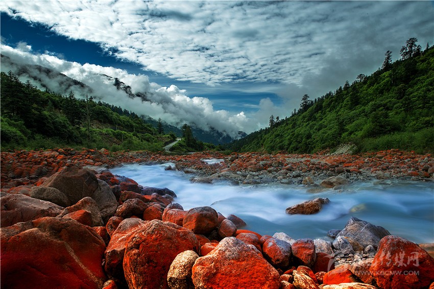 紅石是大自然贈送給貢嘎山地區(qū)最珍稀的物種之一。海螺溝風(fēng)景區(qū)分布著大面積的紅石灘,每一塊石頭都被披上了一件美麗的紅色外衣,紅石在河流兩旁堆積,成群的紅石變成一種流動(dòng)的紅色,與清洌的流水相伴順流而下,讓人感嘆大自然的造化神奇。