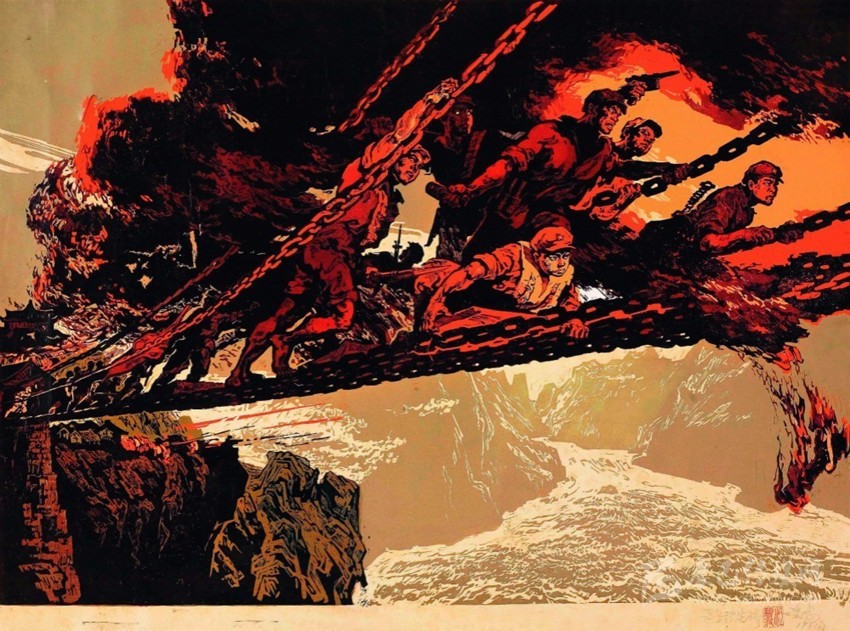 中革軍委于1935年5月26日命令紅一軍團及主力在兩天半內(nèi)向瀘定橋急進。紅一軍團將奪取瀘定橋的任務(wù)交給了王開湘、楊成武領(lǐng)導(dǎo)的紅4團。紅4團遂沿著大渡河西岸向瀘定橋一路飛奔,邊走邊打。沿途山路陡峭崎嶇,危機四伏。