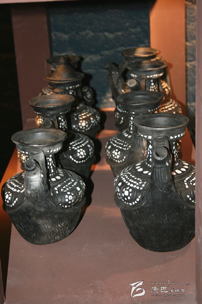黑陶的歷史淵源可以追朔到距今7000多年前的余姚河姆渡文化中的原始黑陶,其制作工藝在距今4000多年前達(dá)到了中國制陶技藝的巔峰狀態(tài)。1977-1979年在西藏昌都卡若村文化遺址的兩次發(fā)掘,顛覆了此前人們有關(guān)青藏高原制陶技術(shù)由唐代中原傳入的認(rèn)識(shí)。離阿西一帶并不太遠(yuǎn)的昌都卡若新石器時(shí)代文化遺址(4000-5000年以前),其陶器雖帶著黃河中上游馬家窯、橫斷山脈地區(qū)乃至長江流域原始文化等多種元素,但為藏族遠(yuǎn)古先民在藏東這一區(qū)域最具創(chuàng)造性的歷史文化提供了實(shí)證。稍后的拉薩曲貢新石器文化遺存情況又有進(jìn)一步發(fā)展。據(jù)其陶器外觀、器形、色彩、紋飾、質(zhì)地等來看,此時(shí)藏族先民制陶技術(shù)已達(dá)到較高水平。20世紀(jì)30年代,人們?cè)卺航嫌尾杉讲侍掌詠?,陸續(xù)在此區(qū)域乃至鄰近的雅礱江、安寧河、大渡河、金沙江等流域及與之相連的青藏高原,發(fā)掘到進(jìn)入金屬時(shí)代以來的石棺墓葬文化遺存,發(fā)現(xiàn)這種文化類型在這一遼闊區(qū)域星羅棋布,精彩紛呈。1975-1987年,人們先后在分別離阿西直線距離不足10公里的亞丁一帶中心,香格里拉鎮(zhèn)仁村北仁村河左岸及瓦龍村仁村河右岸,搶救發(fā)掘出石棺墓葬部分遺存,其中有的墓群葬式和出土物(包括夾砂粗紅褐陶)具有鮮明的地域特點(diǎn),說明阿西一帶自古就是附近部落、部族、民族南來北往遷徙流動(dòng)的場(chǎng)所,有著文化交流、融合的充分條件。將阿西黑陶產(chǎn)品與上述鄰近區(qū)域石棺墓葬發(fā)掘的部分黑陶遺物相比,不難發(fā)現(xiàn)除細(xì)泥、夾砂陶質(zhì)幾乎如出一轍外,阿西黑陶還在許多方面承襲了古老文化的種種元素。換句話說,阿西黑陶是在上述精彩紛呈的古老文化基礎(chǔ)上發(fā)展起來的,除具自身新的文化內(nèi)涵外,與其他周邊石棺墓葬中陶器遺物特征上有一定聯(lián)系的蛛絲馬跡。