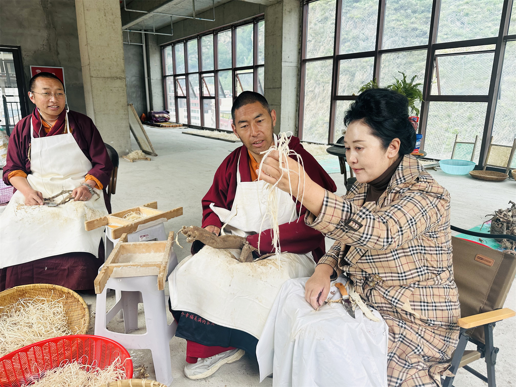 “充巴姐教我做藏紙,每個月還給我發(fā)3000元的基本工資,要是誰家有困難,她也總是解囊相助?!弊鳛榈赂癫丶堉谱鞯馁Y深學(xué)生,翁姆直言藏紙技藝讓自己收獲頗豐。