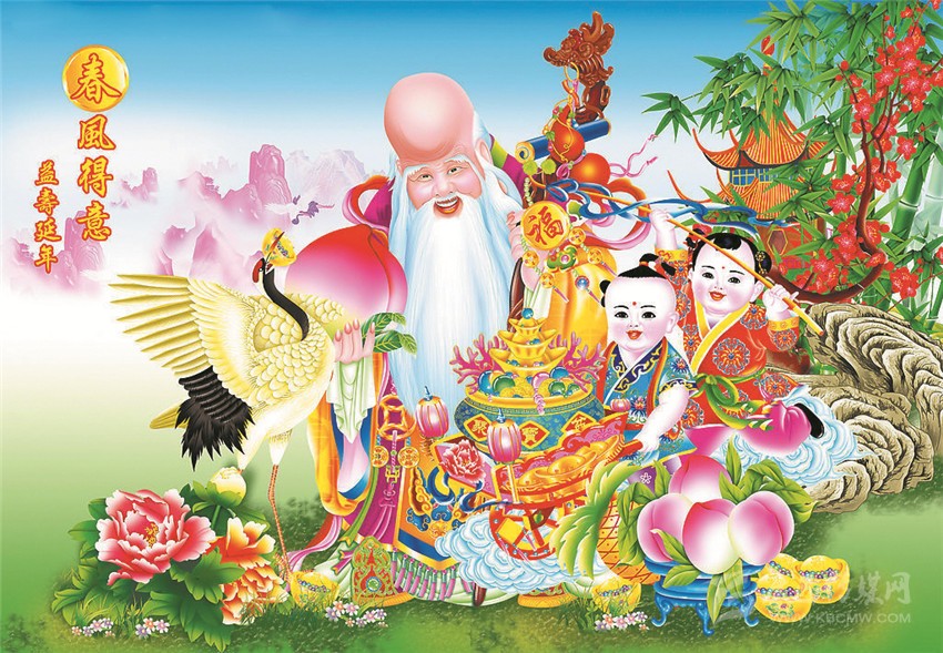 年畫對(duì)人作為一個(gè)特殊物種的感性、感覺、感官的視覺包圍,是建立在民居、家庭、居室對(duì)身體的包圍(物理空間)基礎(chǔ)之上的,也是建立在年畫的張貼對(duì)人的精神恐懼的安慰和安撫并使之安寧的精神包圍(文化空間)之中的。這雙重的視覺包圍還包括了一個(gè)從物質(zhì)和精神的家園,到對(duì)人的出身、成長、成年、老齡、死亡的人生過程的全程包圍和看見。