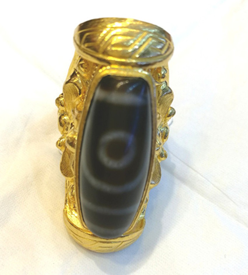 天珠,一種神秘而珍貴寶珠,不僅具有裝飾搭配的作用,更寓意著平安、好運(yùn)。藏族人認(rèn)為能夠供養(yǎng)一顆老天珠既是有了福報(bào),并相信能夠獲得意想不到的吉祥和圓滿。珍貴的天珠鑲嵌在做工精細(xì)的黃金花紋里,不僅是對(duì)時(shí)尚潮流的追隨,更是虔誠信仰的一種體現(xiàn)。