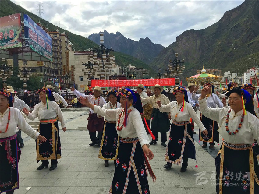 10月2日,在木雅鍋莊悠揚(yáng)的旋律和輕盈的舞步中,歷時兩天的“2017康定情歌國際音樂節(jié)”盛大開幕,作為“五大民俗展演”中的特色民俗歌舞表演部分,木雅鍋莊吸引了眾多游客的關(guān)注。木雅鍋莊來源于木雅人的日常生產(chǎn)和生活,是當(dāng)?shù)剞r(nóng)耕文化習(xí)俗的重要表現(xiàn),表演服飾多以棕紅色外套,紅、白色襯衫為主,表演者多佩戴紅頭繩、珊瑚、金銀等裝飾物。舞蹈分男女兩組,列隊圍桌成圓形,皆彎腰垂首隨領(lǐng)唱歌聲而舞。男組舞姿氣勢豪放,女組舞姿委婉優(yōu)雅。唱腔宛轉(zhuǎn)悠揚(yáng),吸引了在場觀眾冒雨駐足觀看,有的甚至情不自禁隨著舞群踏起了舞步,融入到康巴文化的神秘魅力當(dāng)中。