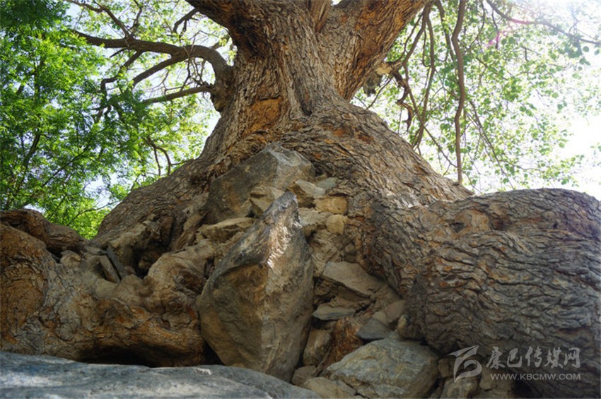 站在藏寨中間,遠(yuǎn)遠(yuǎn)就可以看見(jiàn)那棵枝繁葉茂的桑樹(shù)拔地而起,覆蓋住了幾百平米的大地,近了近了,眼前的樹(shù)和石頭清晰的出現(xiàn)在面前,在一塊高約三米的巨石上,長(zhǎng)著一株高達(dá)10余米的桑樹(shù),樹(shù)冠掩映著200多平米的地面。在這棵樹(shù)下,能真切的感受到“廳前多古樹(shù),有拏云攫石之勢(shì)”之意境。桑樹(shù)的主根深入石縫之中,而幾支碗口粗的側(cè)根則在石面上攀爬,將整塊石頭嚴(yán)嚴(yán)實(shí)實(shí)地包裹起來(lái),有的側(cè)根直接伸進(jìn)石塊底部的土地里,而有的側(cè)根則鉆進(jìn)狹小的石縫中,由于受到石片的擠壓,原本粗壯的樹(shù)根呈現(xiàn)扁平狀,一旦脫離了石縫的夾裹,樹(shù)根變得遒勁有力,猶如蛟龍出水。這些樹(shù)根在巨石上盤(pán)根交錯(cuò),組成一個(gè)整體,就像是一個(gè)巨人,盤(pán)膝而坐。往上,桑樹(shù)枝干與樹(shù)根一樣旺盛,黑色的樹(shù)皮布滿(mǎn)了裂紋,仿佛是歲月的皺紋。樹(shù)干之間有幾個(gè)大小不一的樹(shù)洞,里面裝填著白色的石塊,據(jù)說(shuō),這是信徒們將自己的心愿附注在白石上,希望借助神樹(shù)之力送達(dá)天庭。再往上,可以看見(jiàn)在枝干上的分叉處,猛地一下涌出許許多多多鮮活的枝葉,透露出綠綠的光芒。越往上,枝椏越密,厚厚的枝葉便疊加在一起,組成綠葉搭建的棚頂。在這高大茂盛的桑樹(shù)里,雖然沒(méi)有桑椹可食,然而因?yàn)橛芯G葉樹(shù)叢的庇護(hù),這里儼然成了鳥(niǎo)雀的天堂,各色鳥(niǎo)雀便棲息在樹(shù)枝間,發(fā)出愉悅的歌聲,張開(kāi)靚麗的羽翅,在樹(shù)叢里你追我趕,上下飛舞,對(duì)不速之客仿佛并不在意,有時(shí)候落下來(lái),在地面上啄食祭祀時(shí)所灑落的青稞、麥粒等糧食,接著又撲閃著翅膀飛向樹(shù)巔。