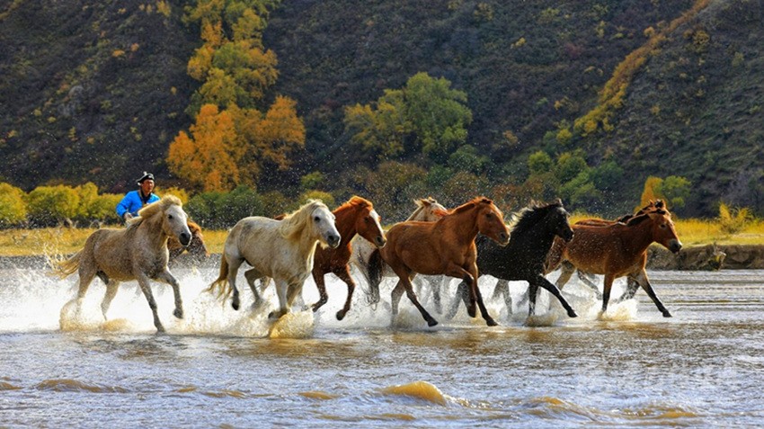 溪沙縱馬。 王慧 攝