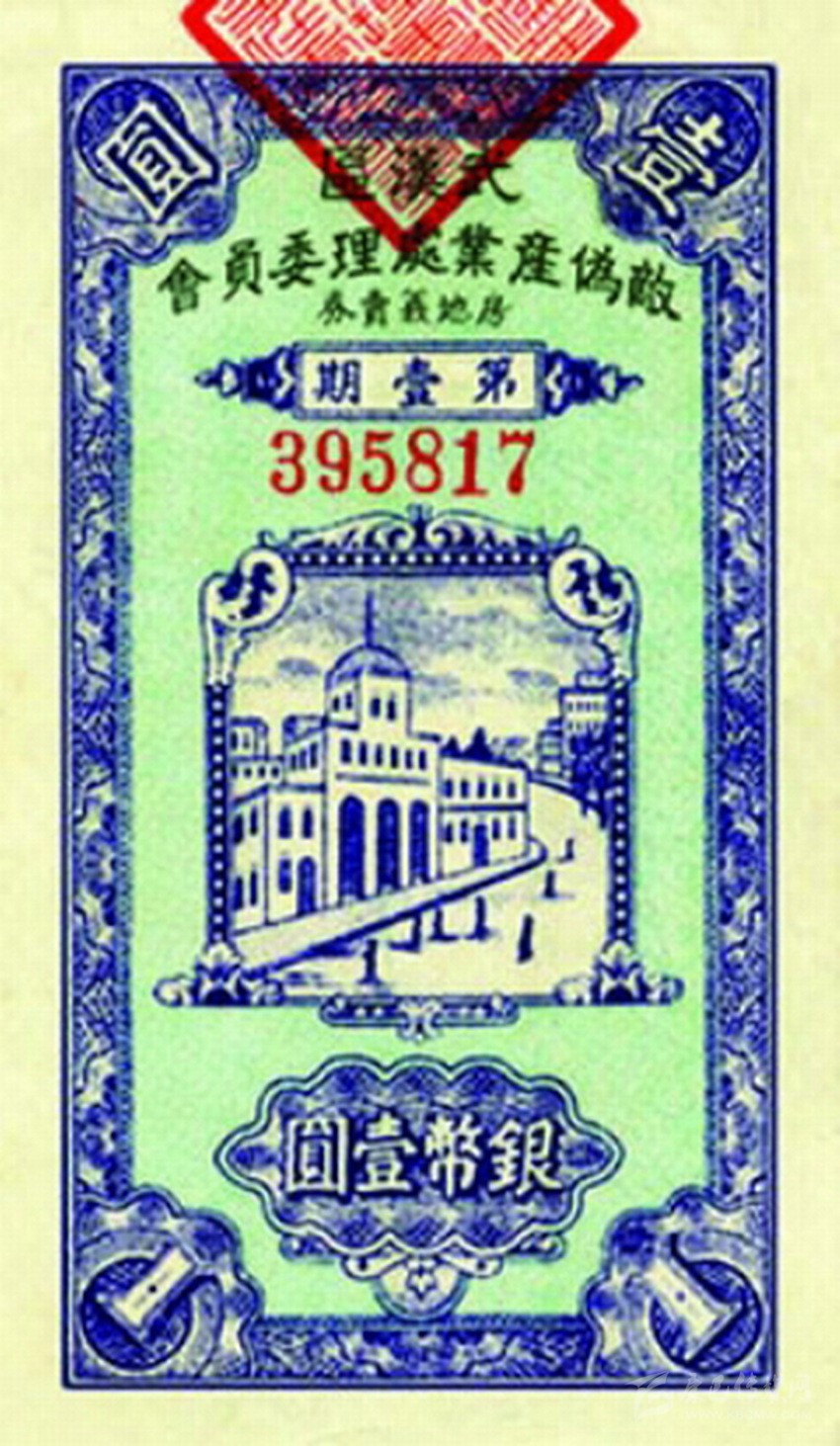 1949年3月,武漢市政府發(fā)行了100萬張彩票,面值都是“銀幣一元”,可以買一張,中獎率是兩萬五千分之一,獎品是位于漢口的別墅。推出彩票“房地義賣券”,以武漢區(qū)敵偽產(chǎn)業(yè)處理委員會名義發(fā)行,票幅高62毫米,闊106毫米,售價為銀幣壹元,計劃發(fā)行100萬枚,計有39幢房屋充作獎品,定于5月10日在漢口當眾搖彩。1949年,正是國民黨政權(quán)風(fēng)雨飄搖之時,因此5月10日的搖彩日也就成了彩票發(fā)行組織者的逃命日,六天后武漢解放,那“房地獎”未能兌現(xiàn)。