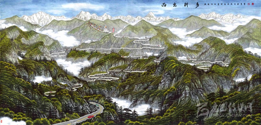 根據(jù)裴洪波所說,不難發(fā)現(xiàn),“康定新八景”不光是八幅惹眼的畫作,它們還有著深層次的含義。那么,這層深意是否能解釋“康定新八景”新在哪里?采訪繼續(xù)進(jìn)行著。