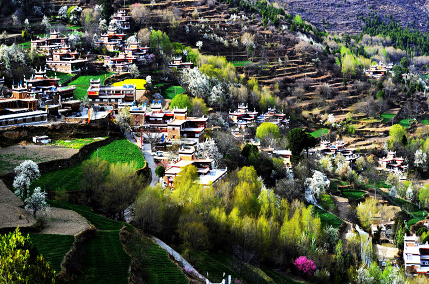 青稞苗剛剛出土,青嫩青嫩的,讓人想象成大地那層透明皮膚下的血液。在風(fēng)中,暖洋洋的陽(yáng)光似乎會(huì)動(dòng),從東邊跑到西邊,又從西邊跑到東邊。土壤那層薄皮下的綠色,也激動(dòng)地涌動(dòng)起來(lái)。