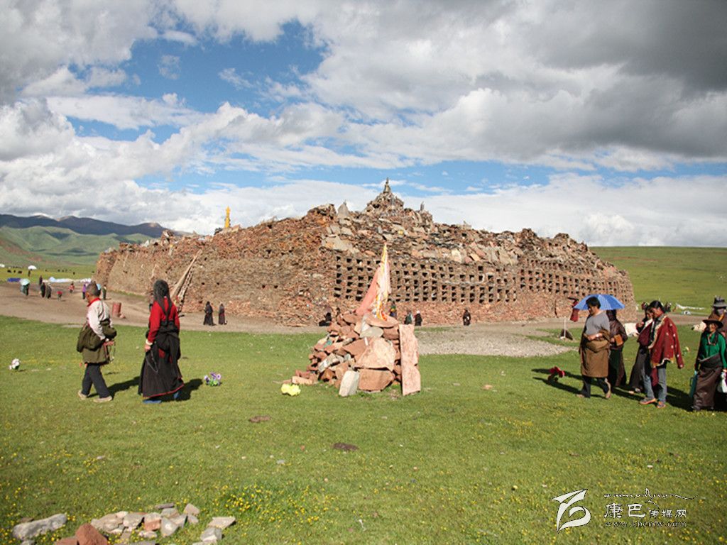 吃完午飯后,大家便走向松格瑪尼石經(jīng)城。短暫的煨桑儀式結(jié)束后,一匹匹高頭大馬繞著石經(jīng)城飛跑,隆達(dá)撒向半空,飄散在雨后的草原上。隨后,專家們走進(jìn)石經(jīng)城,挨個頂禮了一處石刻造像,據(jù)說,這一處石刻造像具有加持力,十分靈驗??脊艑<覀兒陀浾呃@松格瑪尼石經(jīng)城走完一圈后,便離開,前往須巴神山。