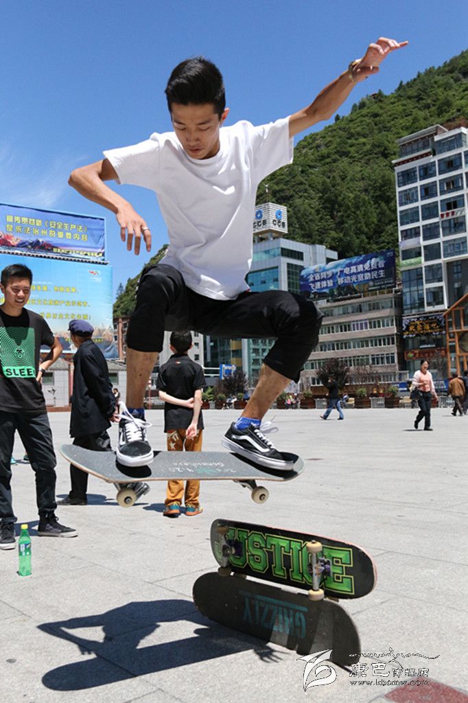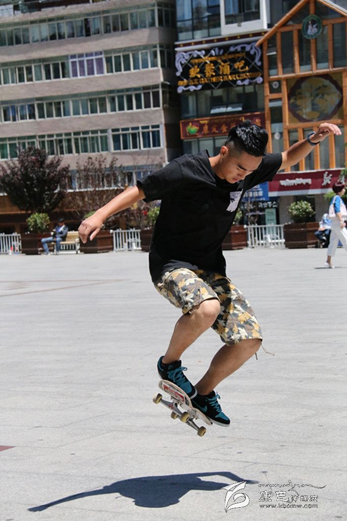提到極限運(yùn)動,你首先會想到什么?直排輪、空中沖浪、跑酷、攀巖……它們中很多都由滑板延伸而來,因此滑板又被稱為極限運(yùn)動的“鼻祖”。在康定,有這么一群年輕人,他們每到暑假,每天都會在情歌廣場集合,踏上滑板、踩上輪滑挑戰(zhàn)一個個“不可能的任務(wù)”。一身肥大的T恤牛仔,夸張的金屬耳釘、項鏈、手鏈、戒指,和著動感十足的Hip-Hop音樂,踩著滑板在障礙之間穿梭,間或穿插幾個高難度花式動作,引得觀眾此起彼伏地喝彩尖叫……這是很多人印象中滑板、滑輪小子的形象。但當(dāng)賀淼、謝明洋、陳凱他們出現(xiàn)在記者面前時,簡單的裝束真有點讓記者意外。他們的身上幾乎不見任何首飾,普通的T恤加瘦版牛仔褲,還有頭上簡單的鴨嘴帽, “Hip-Hop” 前衛(wèi)的影子并不明顯。